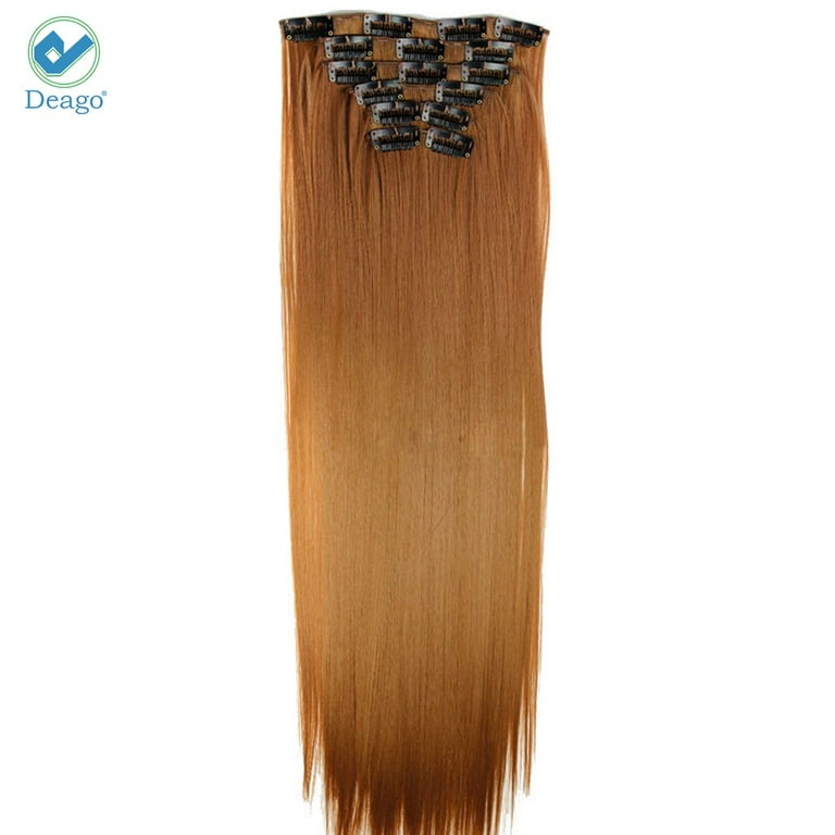 Deago 24 Inch 16 Clips Full Head Long Straight Clips In On Synthetic Hair Extensions Hair 6 Pieces For Women Auburn Brown Walmart Com