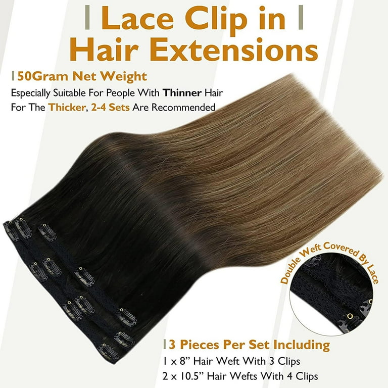 Full Shine Lace Clip In Human Hair Extensions 14 Inch Balayage Black Fading To Brown And Blonde Hair Clip Ins 3pcs Walmart Com